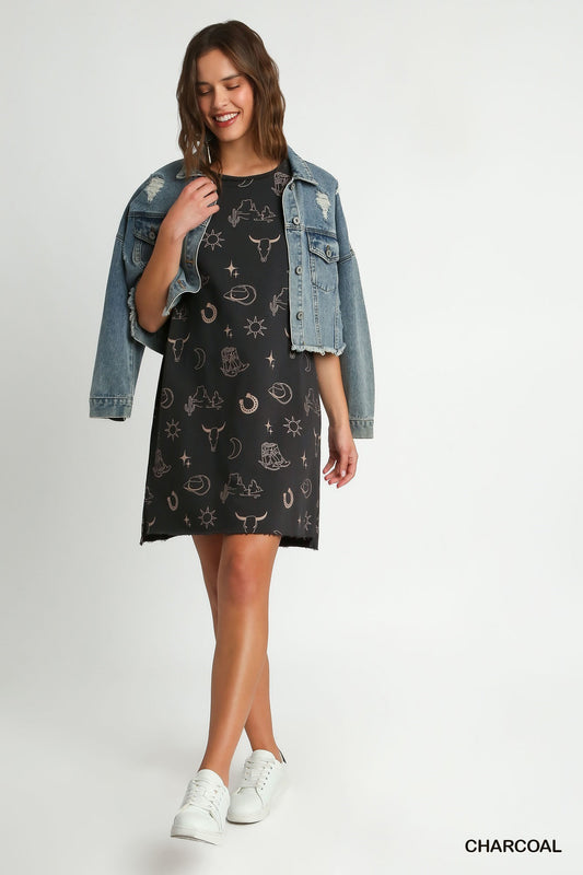 Sold outHowdy Graphic Dress Charcoal