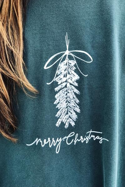 Merry Christmas Mistletoe Long Sleeve Tee Green