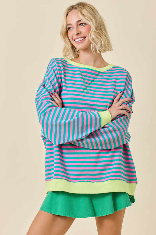Oversized Striped Crewneck Pink and Turquoise