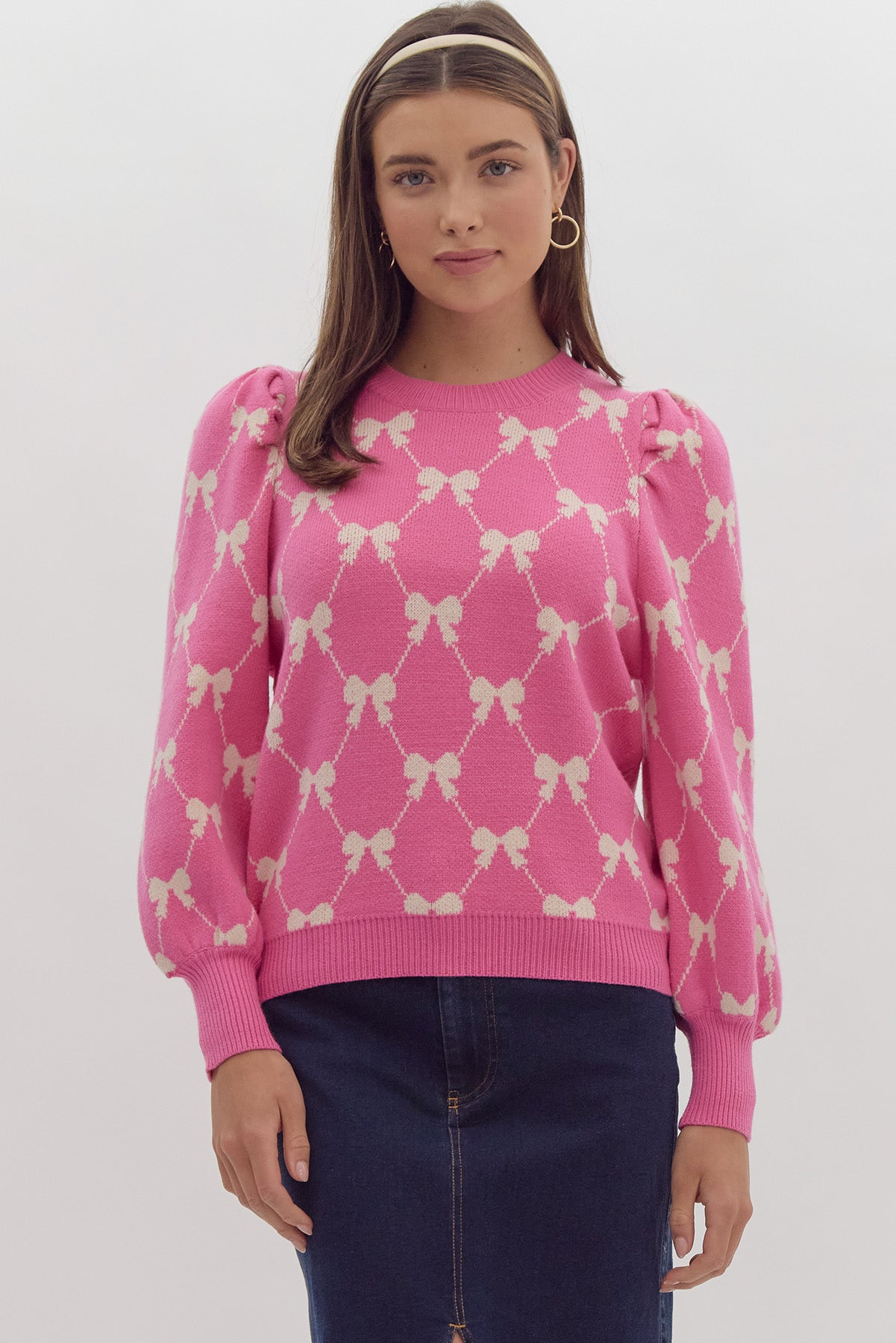 Bow Knit Sweater Pink