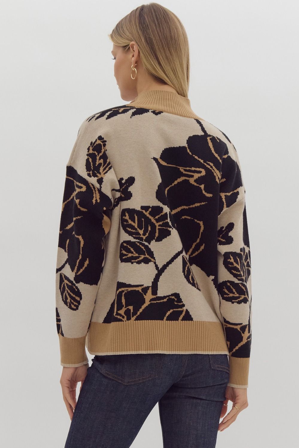 Introducing the Majestic Floral Mock Neck Half Zip Sweater, a luxurious and soft addition to your wardrobe. This knit sweater features a beautiful floral print, contrasting solid ribbed details, and a lightweight, non-sheer design. Stay warm and stylish in this must-have piece.