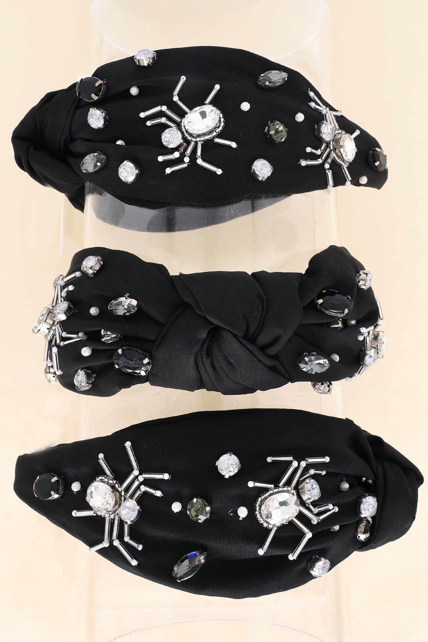 Make a statement with this handmade beaded black spider rhinestone headband. With a festive embellishment of sparkly rhinestones and glitzy bling, it is sure to turn heads. The 6.25" height and 2.75" width ensures a perfect fit. Ideal for Halloween and any other special occasion.