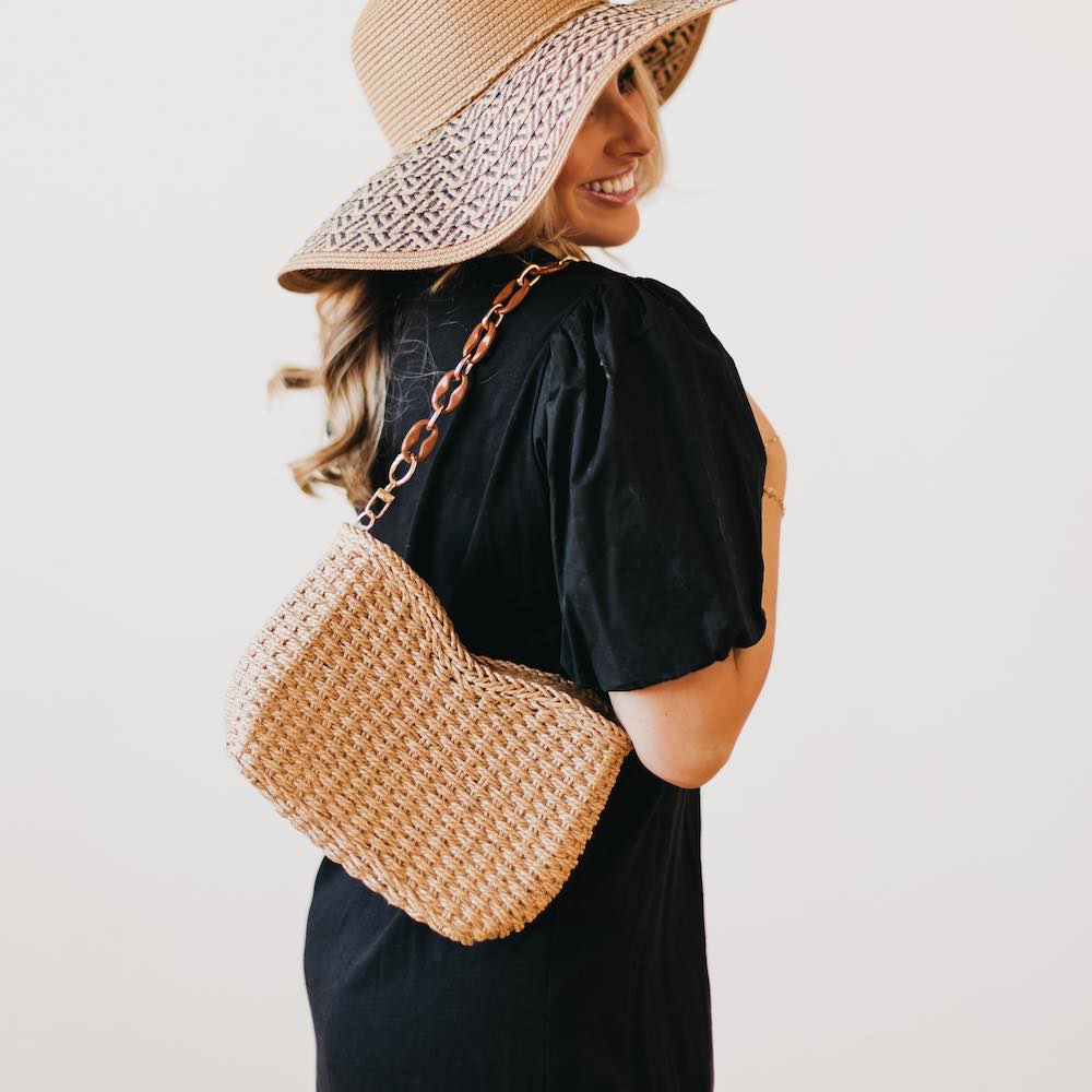 Get ready for a stylish staycation with our Staycation Straw Shoulder & Crossbody Bag! Made of sturdy straw with a removable acrylic and metal chain strap, it's the perfect size to carry your essentials. With this bag, you can bring your favorite items on the go in a playful and trendy way! PS, it even comes with a matching removable and adjustable canvas crossbody strap!