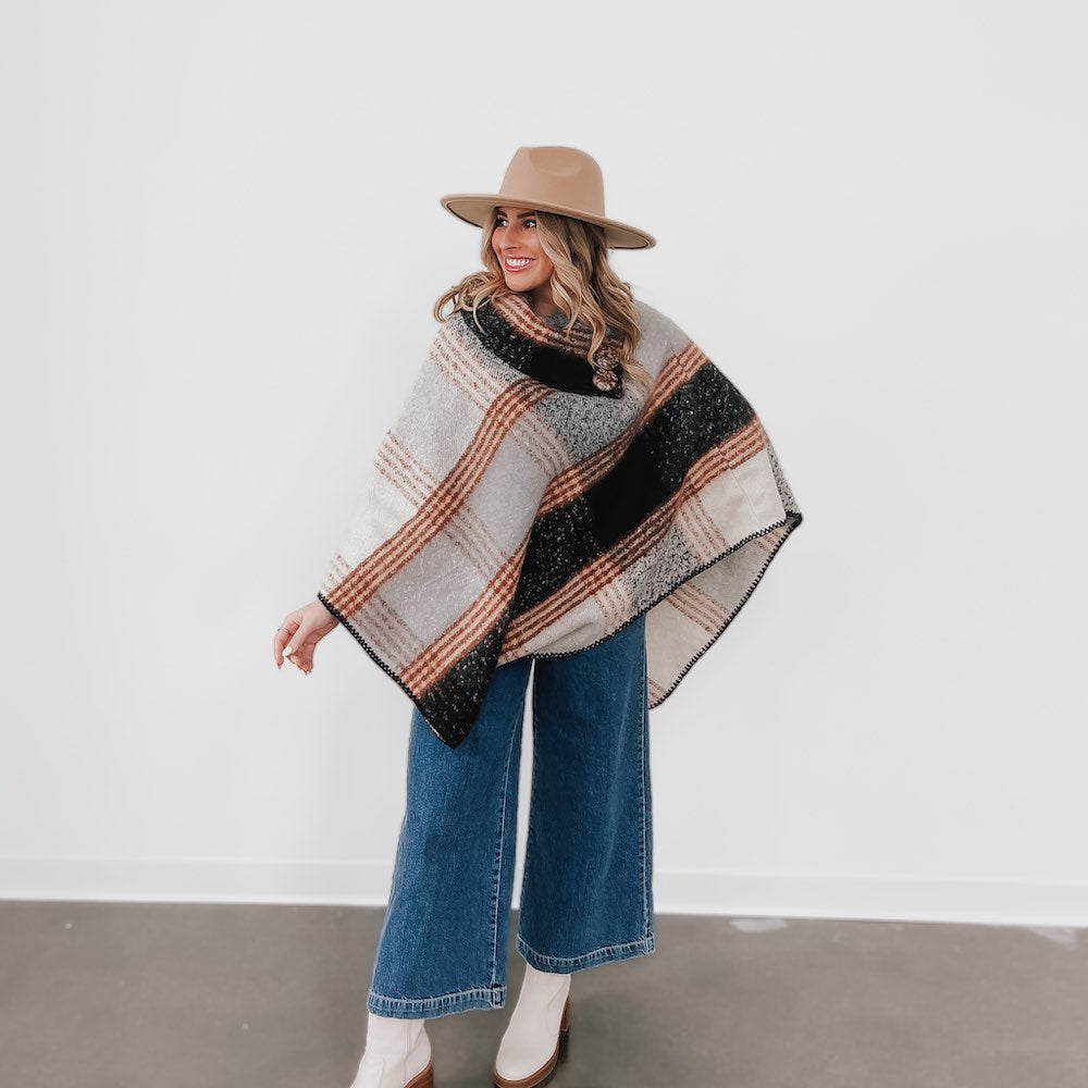 Bundle up with this cozy plaid button scarf, and add both function and style to your outfit! Plaid is a classic, timeless choice, yet on trend for fall. These blanket scarves have real wooden, functional buttons convert this traditional scarf into a shawl/cape that can be worn a number of different ways. Buttons down the middle or to the side. Unbuttoned to wrap around your neck. Perfect for the cooler nights ahead, a football game, bonfire, when a jacket is just too much. And throughout the season for the simple, classic style you are looking for.