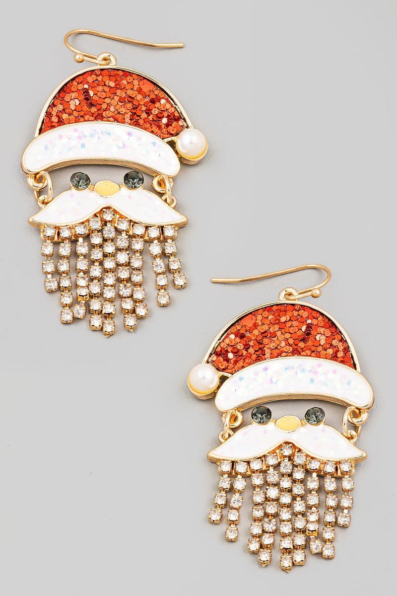 These festive earrings feature an adorable Christmas tree design crafted from sparkling rhinestones and acetate. The perfect accessory for the holiday season, these charming Santa earrings are perfect for adding a touch of sparkle and whimsy to any look.
