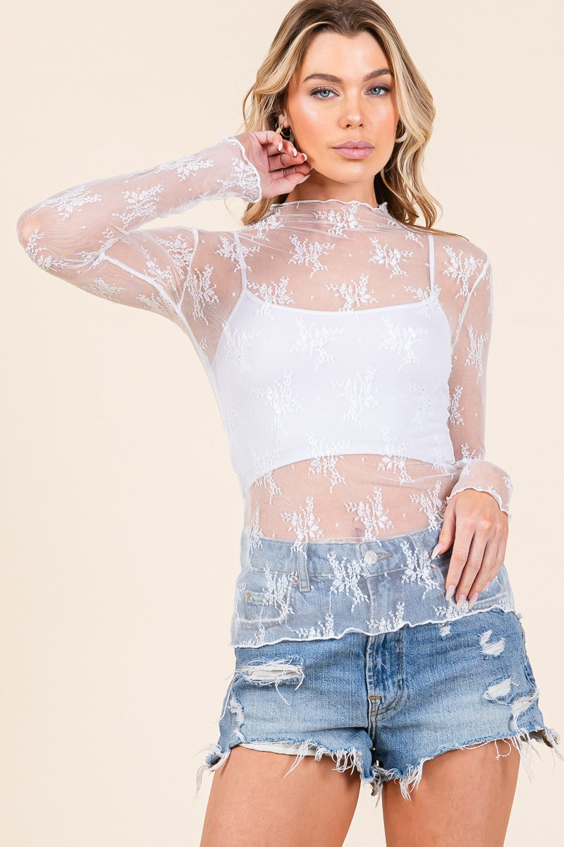 As a fashion expert, I recommend the versatile Long Sleeve Floral Lace Top. With its stretchy fabric, it easily pairs with jeans for a casual look or a skirt for a dressed-up style. Its timeless floral lace design adds a touch of elegance, making it a must-have for day or night.