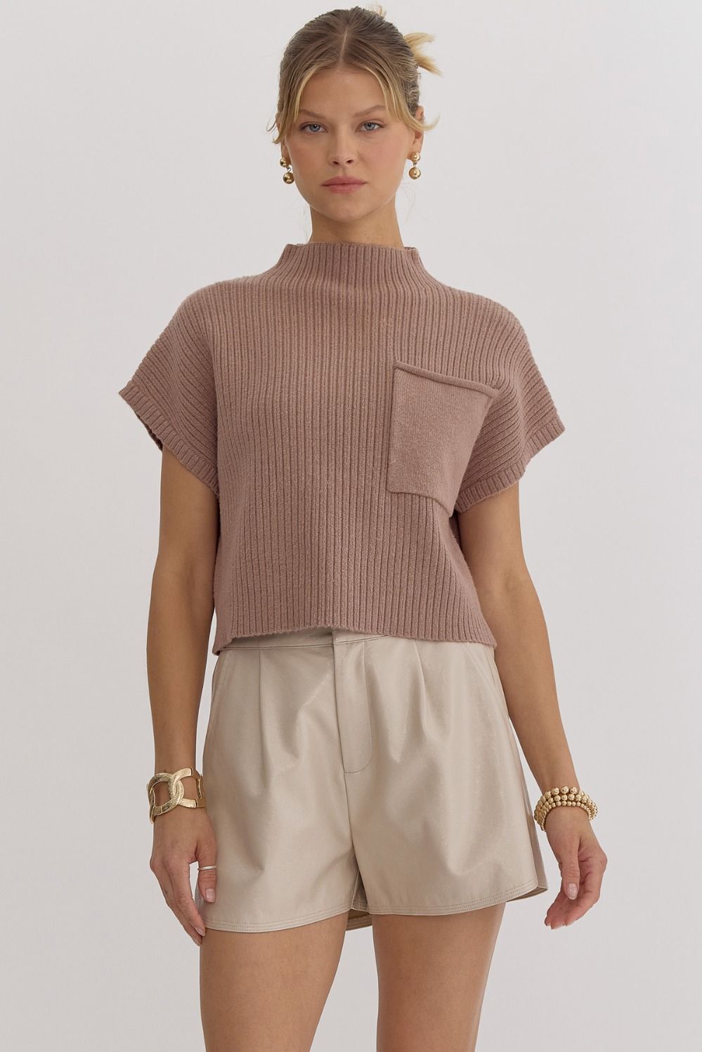 Expertly crafted for both style and comfort, the Mock Neck Sweater in Mocha is a must-have addition to any wardrobe. The solid knitted design boasts a mock neck and a convenient single pocket, providing both warmth and functionality. Lightweight and unlined, it's perfect for layering or wearing on its own.