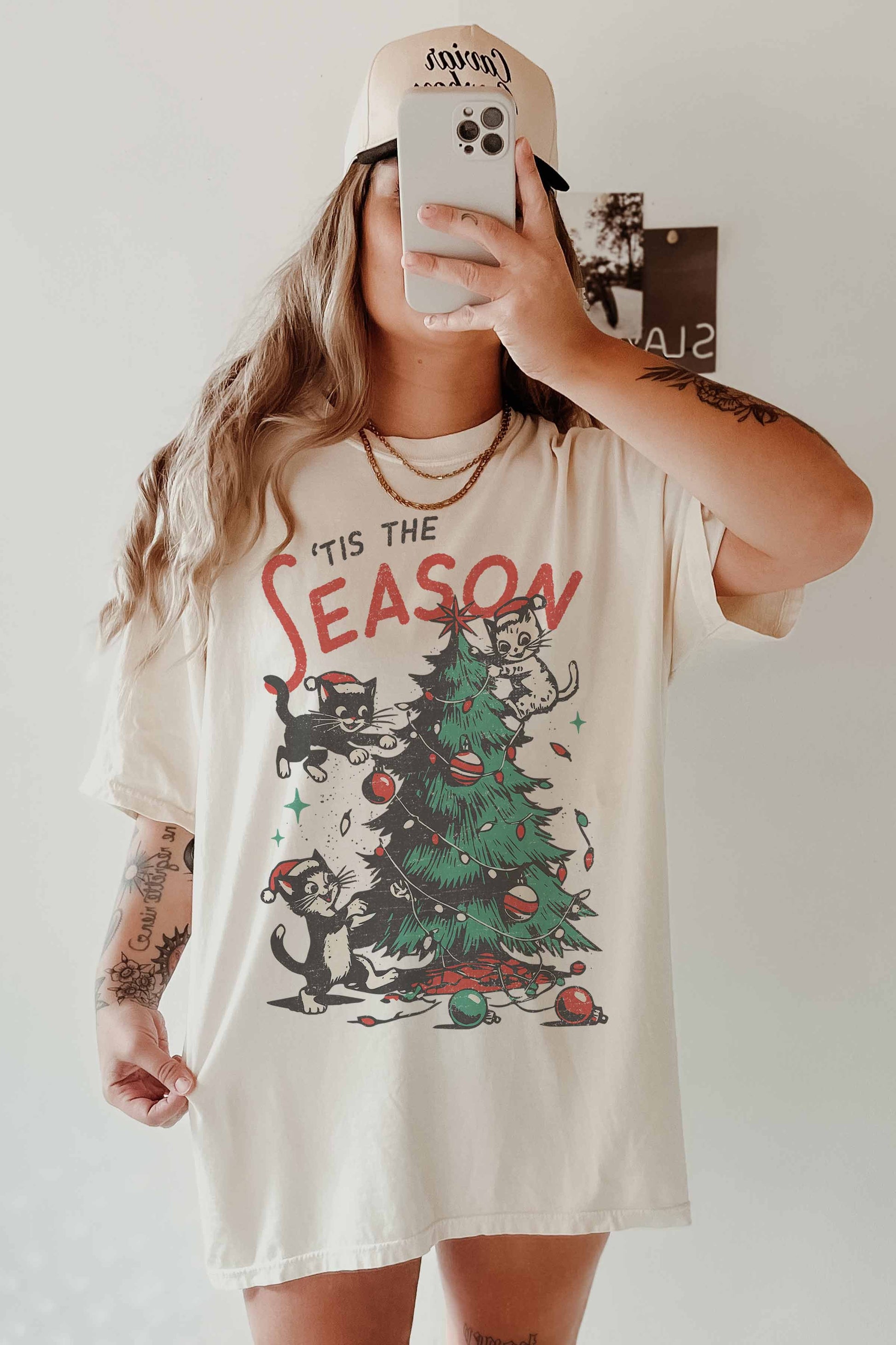 Introducing our Retro 'Tis The Season Tee, perfect for spreading holiday cheer! Crafted with a premium tee and featuring an adorable graphic, this oversized fit is both stylish and comfortable. Get into the holiday spirit with this must-have addition to your wardrobe.